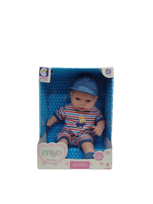 Boneco Miyo Bebês Fofinhos Menino – Cotiplás O boneco é produzido em vinil perfumado, tem os olhos azuis uma roupinha super fofa e boné, além de ser super macio e gostoso de abraçar, é leve, com 47cm de altura.