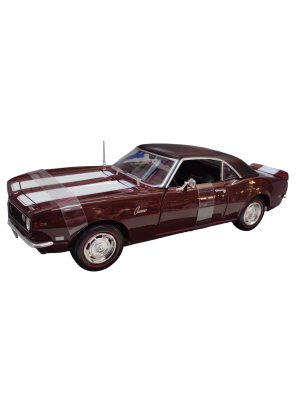 Miniatura 1968 Chevrolet Camaro Z/28 Special Edition 1/18 – Maisto O Camaro é um coupé esportivo da Chevrolet. Produzido desde 1966, trata-se de “muscle car” termo em inglês para grupo de carros americanos esportivos com 2 portas e motor potente. Miniatura do clássico de 68 que foi descontinuado por uma crise no combustível. Cheio de detalhes, o carro abre as portas e por malas, possui pneus de borracha e base para expor.