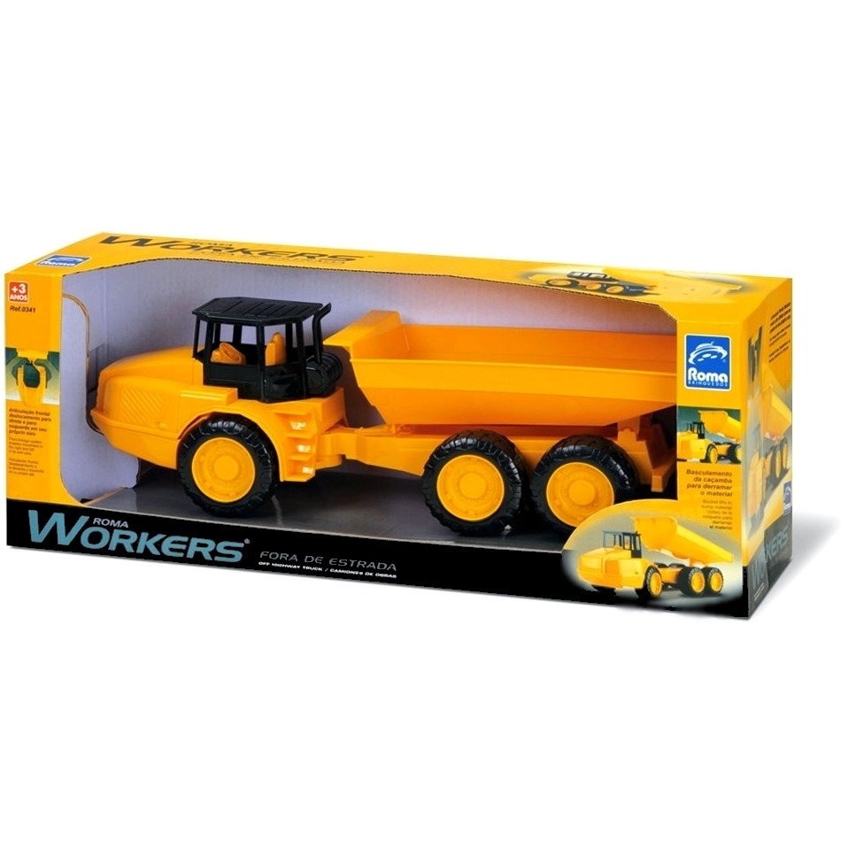 Caminhão Fora de Estrada Workers – Roma Brinquedos é um caminhão robusto que possui um basculante com caçamba articulada para carregar e descarregar o que quiser. Produto com acabamento ótimo e muito realista, um produto que vai deixar suas brincadeiras mais completas e divertidas ainda!