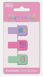 Clips de Metal com 3 unidades – Tilibra 3 unidades de clips de metal com frases e desenhos super fofos. Super útil para organizar seus papéis.