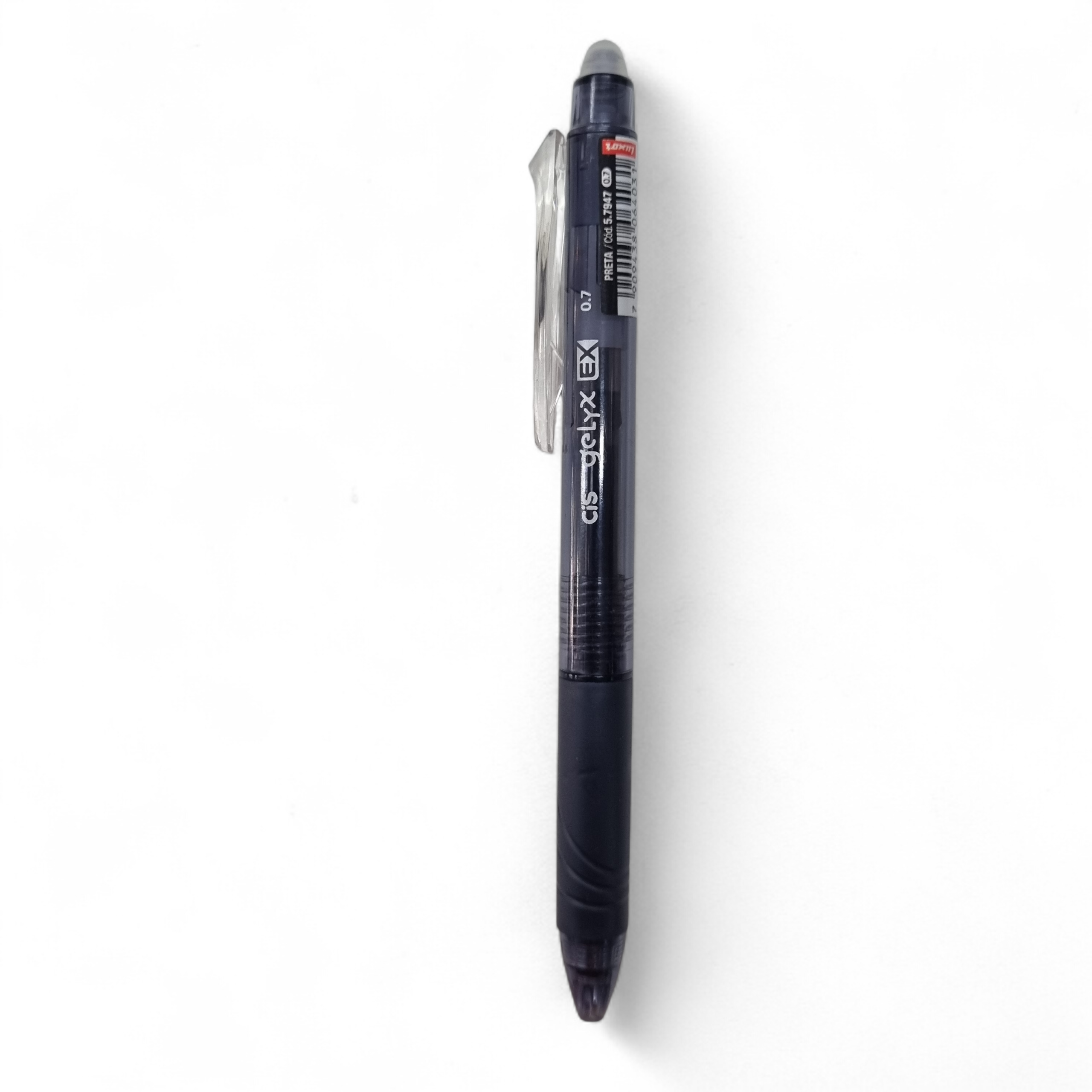 A Caneta gel apagável Cis Gelyx EX 0.7 mm possui ponta fina, tinta de secagem rápida e borracha integrada. É retrátil e confortável, tornando-se ideal para escrita, estudos e anotações, combinando praticidade e qualidade em uma só caneta, perfeita para o dia a dia.