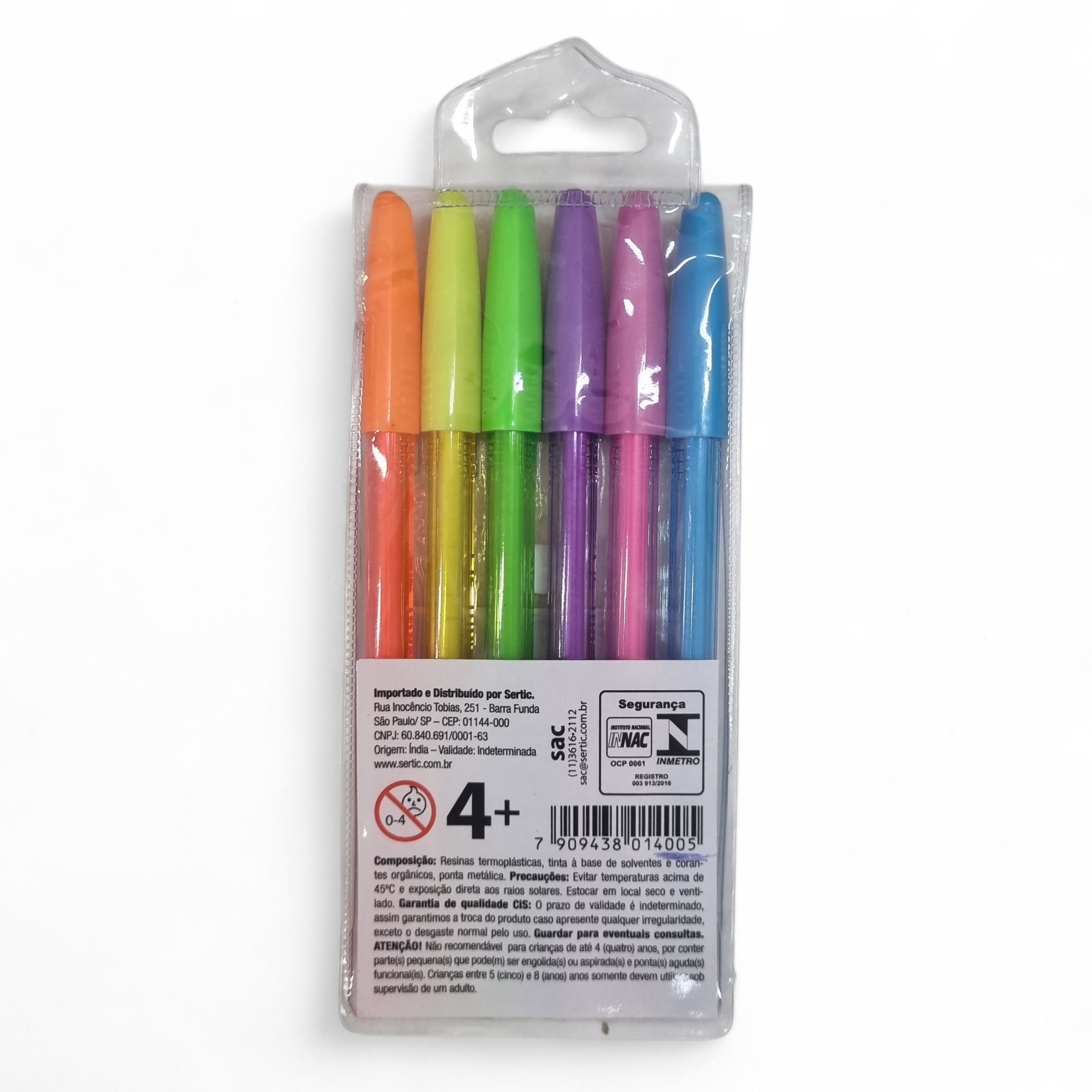 - Contém: 6 canetas gel com corpo triangular e ponta 0.8 mm.
