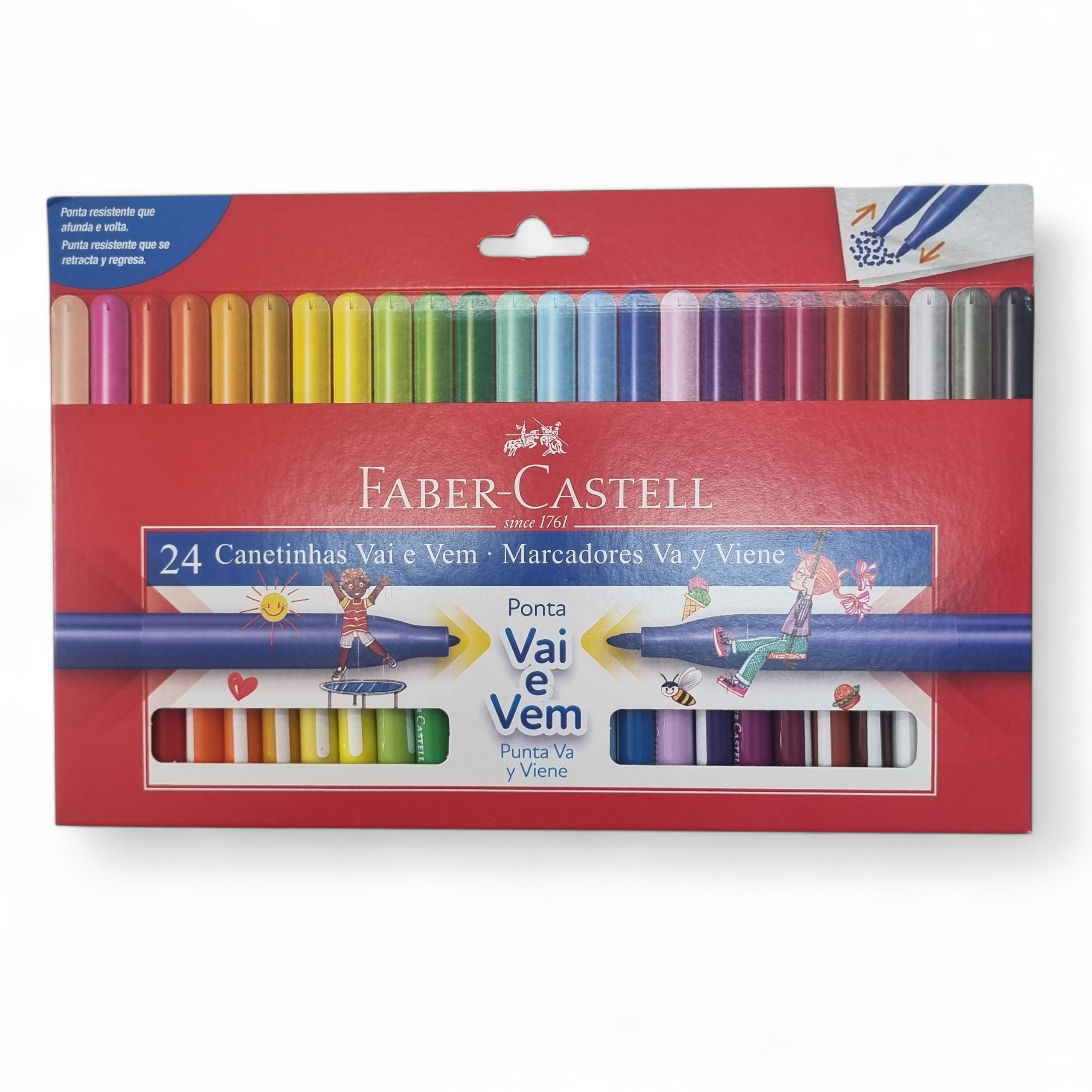 As Canetinhas Vai e Vem 24 Cores – Faber-Castell são perfeitas para colorir, desenhar e estimular a criatividade de crianças e adolescentes. Com tinta lavável à base de água, ponta resistente e cores vibrantes, proporcionam diversão e praticidade em atividades escolares e artísticas.