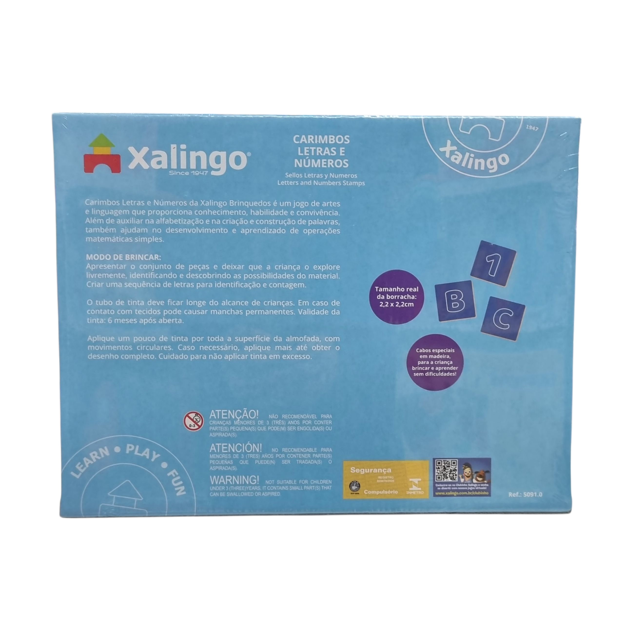 Carimbos Letras e Números 40 Peças – Xalingo: inclui 40 carimbos de madeira, tinta atóxica, almofada, bloco de papel, folhas para colorir e giz de cera. Indicado para crianças a partir de 4 anos, estimula coordenação motora, criatividade e reconhecimento dos símbolos de forma divertida, ótimo para brincar com a família. Um brinquedo que auxilia na aprendizagem de forma lúdica e interativa.