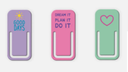 Clips de Metal com 3 unidades – Tilibra 3 unidades de clips de metal com frases e desenhos super fofos. Super útil para organizar seus papéis.