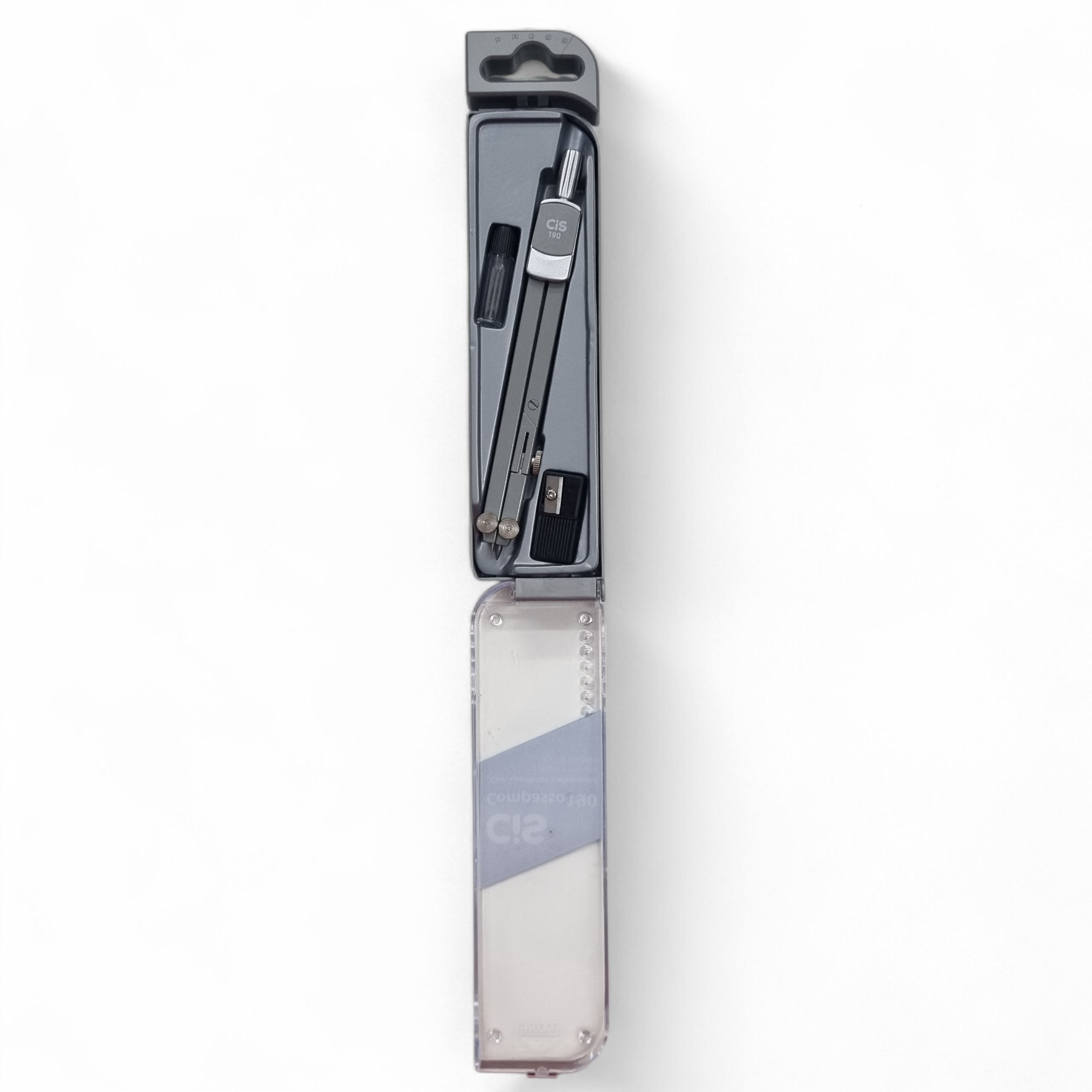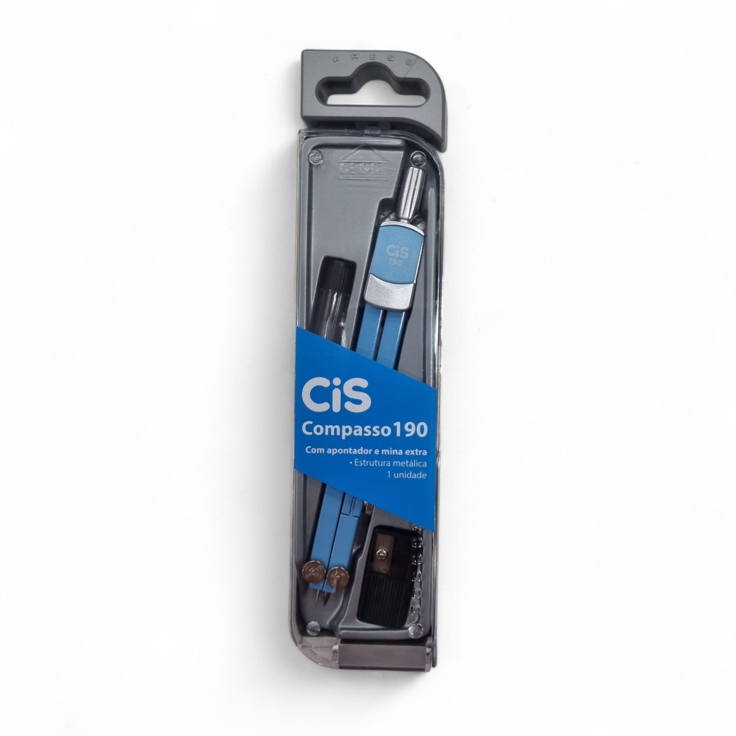 O Compasso metálico Cis 190 é ideal para desenho técnico, escolar e trabalhos de geometria. Possui mina extra, apontador integrado e estrutura resistente para traços precisos e confortáveis.
