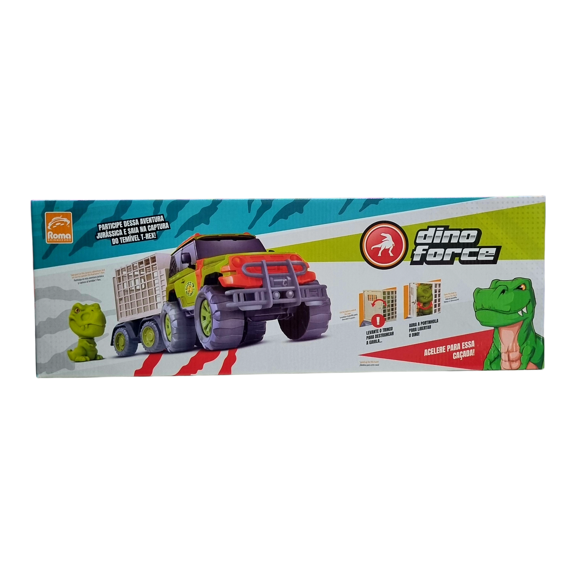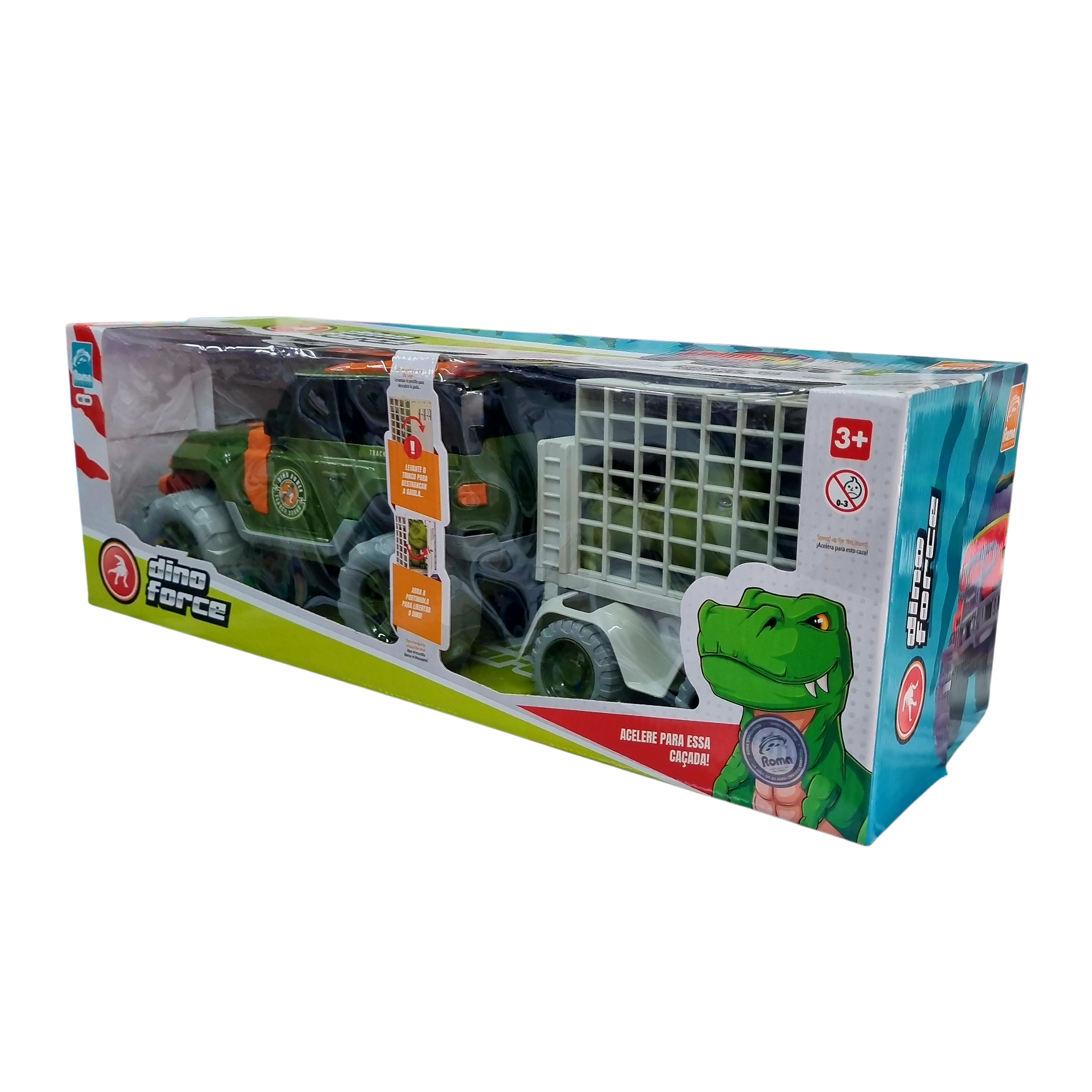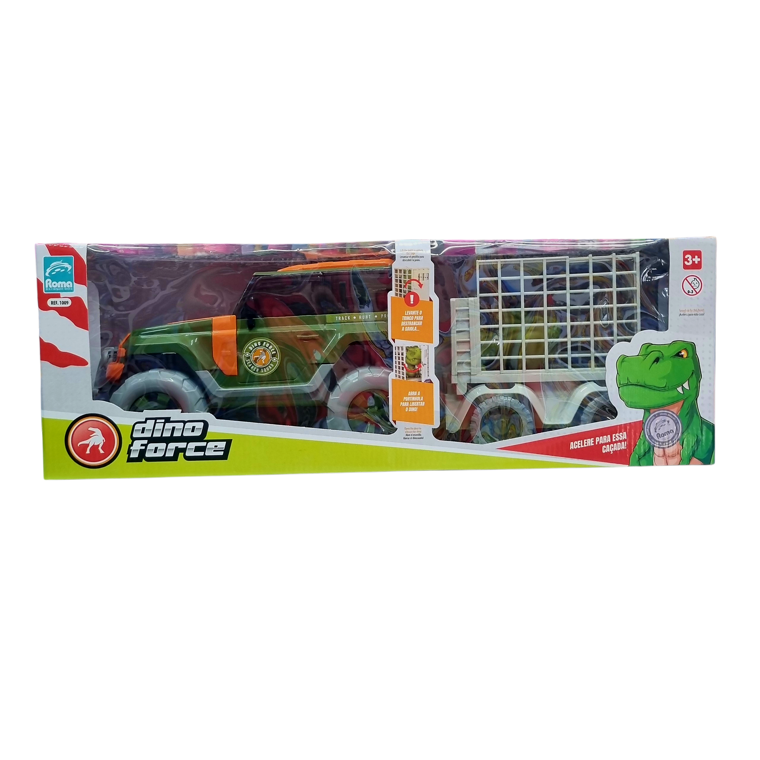 - Jipe Off-Road Dino Force com Dinossauro e Jaula