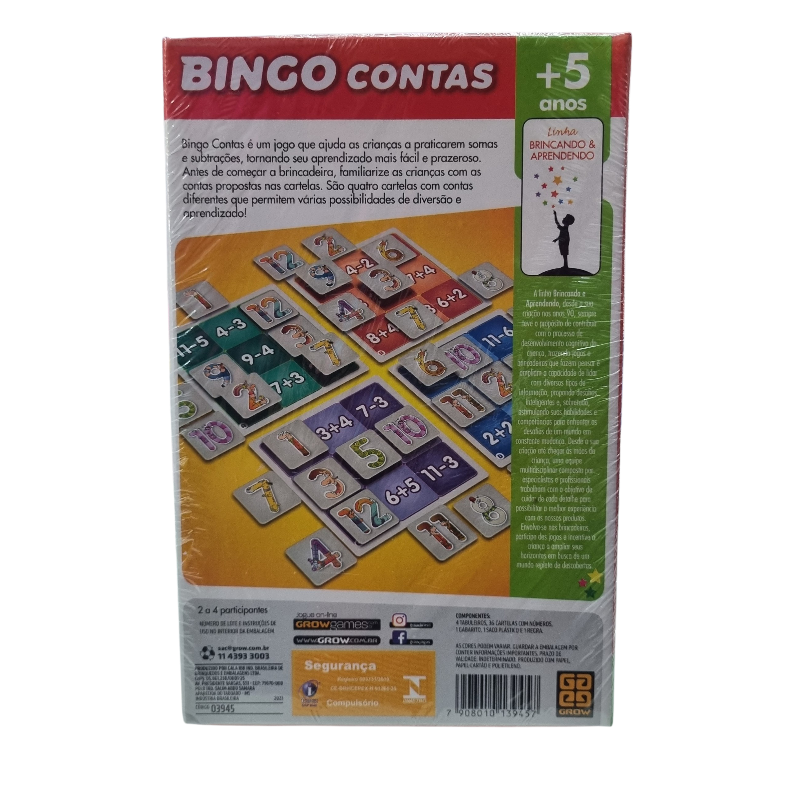 - Contém: 4 tabuleiros, 36 cartelas com números, 1 gabarito, 1 saco plástico e 1 manual de regras.