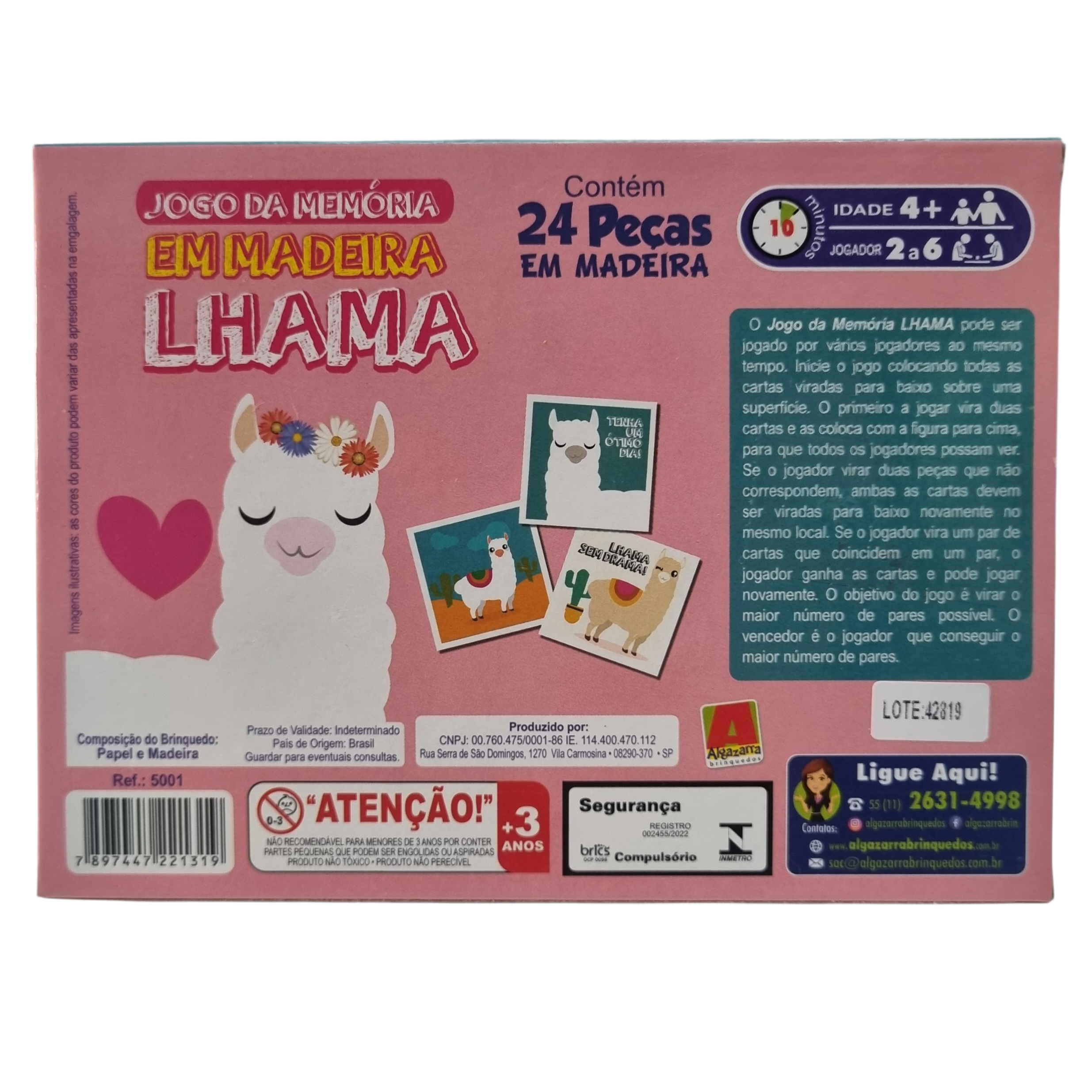 Estimula a memória, concentração e raciocínio lógico de forma divertida e educativa. Com 24 peças em MDF resistente e ilustrações coloridas de lhama, é ideal para crianças a partir de 4 anos. Perfeito para brincar em família ou com amigos.