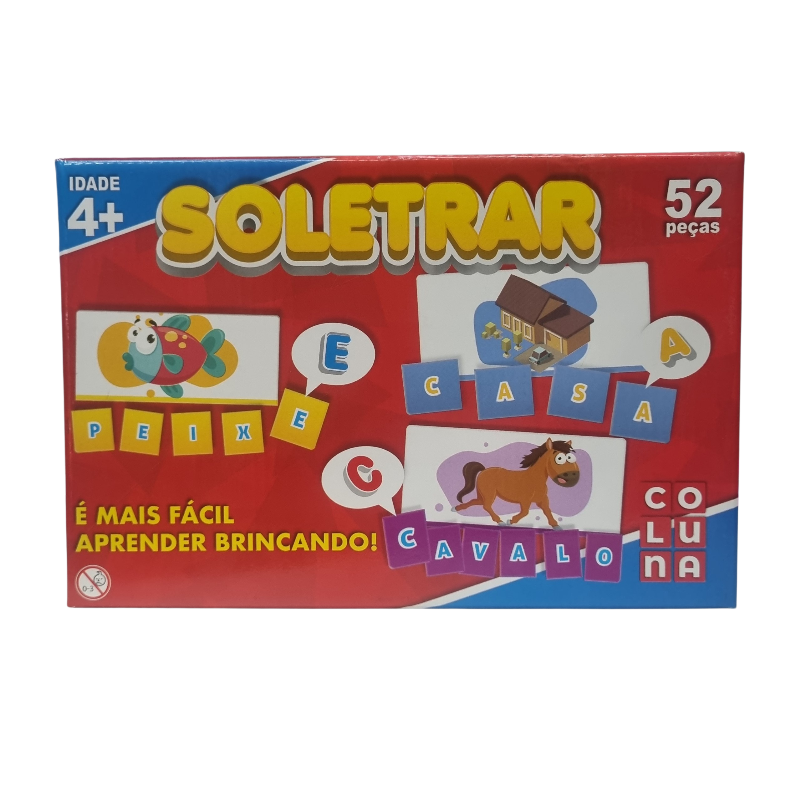 O Jogo Soletrar – Coluna é um divertido jogo educativo com 52 peças coloridas que permitem às crianças formar palavras e associar letras a imagens. Ideal para crianças a partir de 4 anos, estimula a alfabetização, percepção visual, raciocínio e coordenação motora de forma lúdica e interativa, tornando o aprendizado mais prazeroso