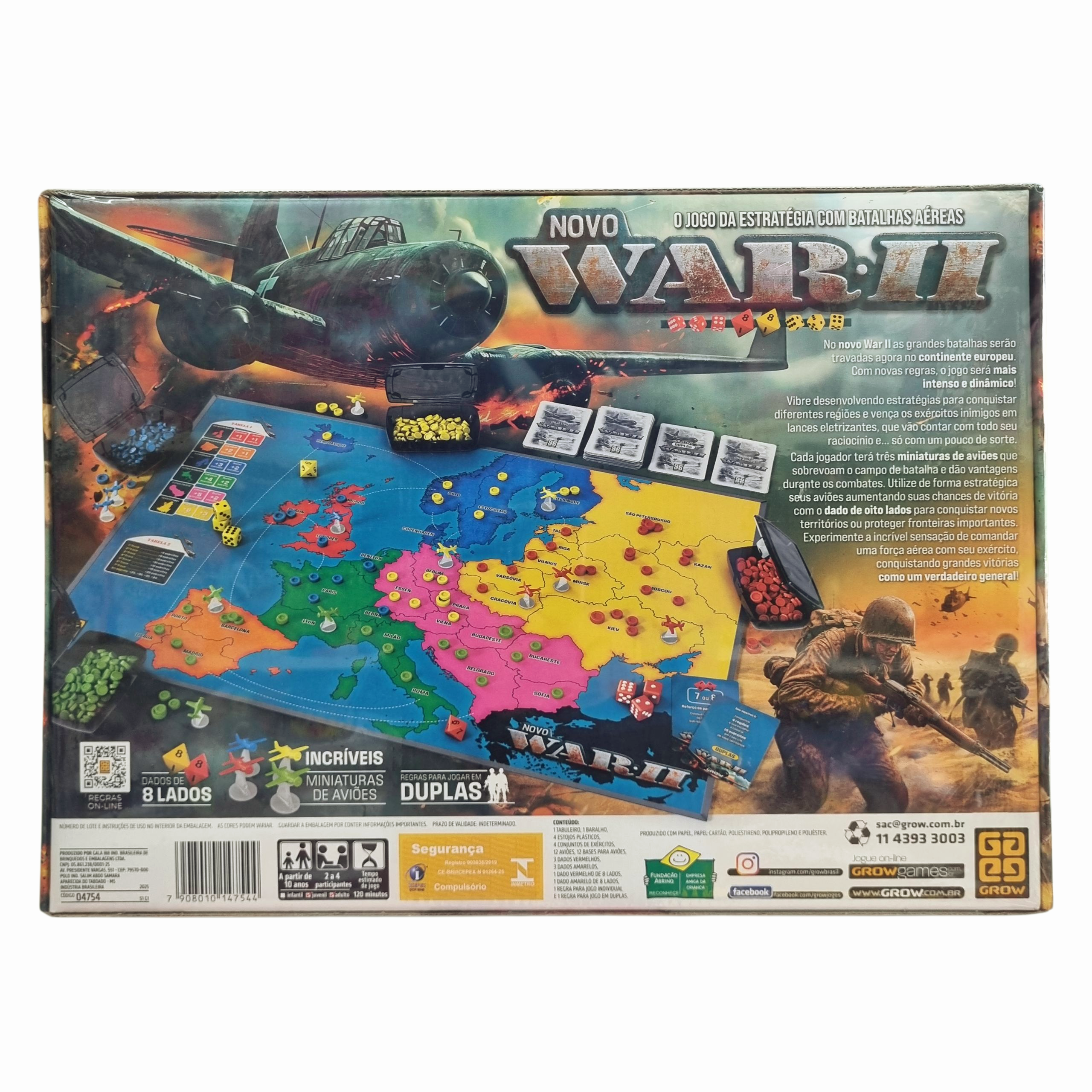 - Contém: 1 tabuleiro, 1 baralho, 4 estojos plásticos, 4 conjuntos de exércitos, 12 aviões, 12 bases para aviões, 3 dados vermelhos, 3 dados amarelos, 1 dado vermelho de 8 lados, 1 dado amarelo de 8 lados, 1 regra para jogo individual e 1 regra para jogo em duplas.