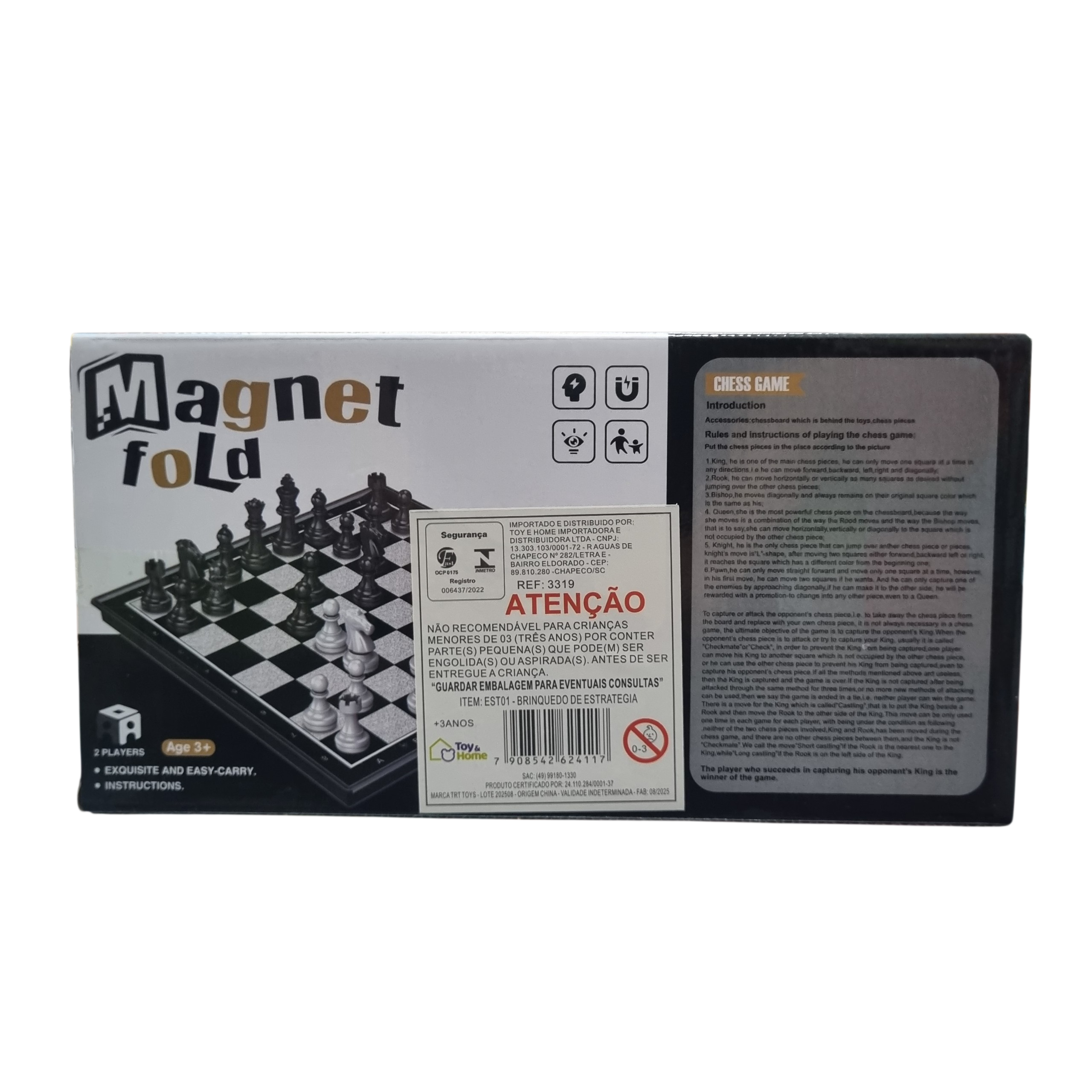 - Contém: 1 tabuleiro de xadrez portátil e 32 peças magnéticas.