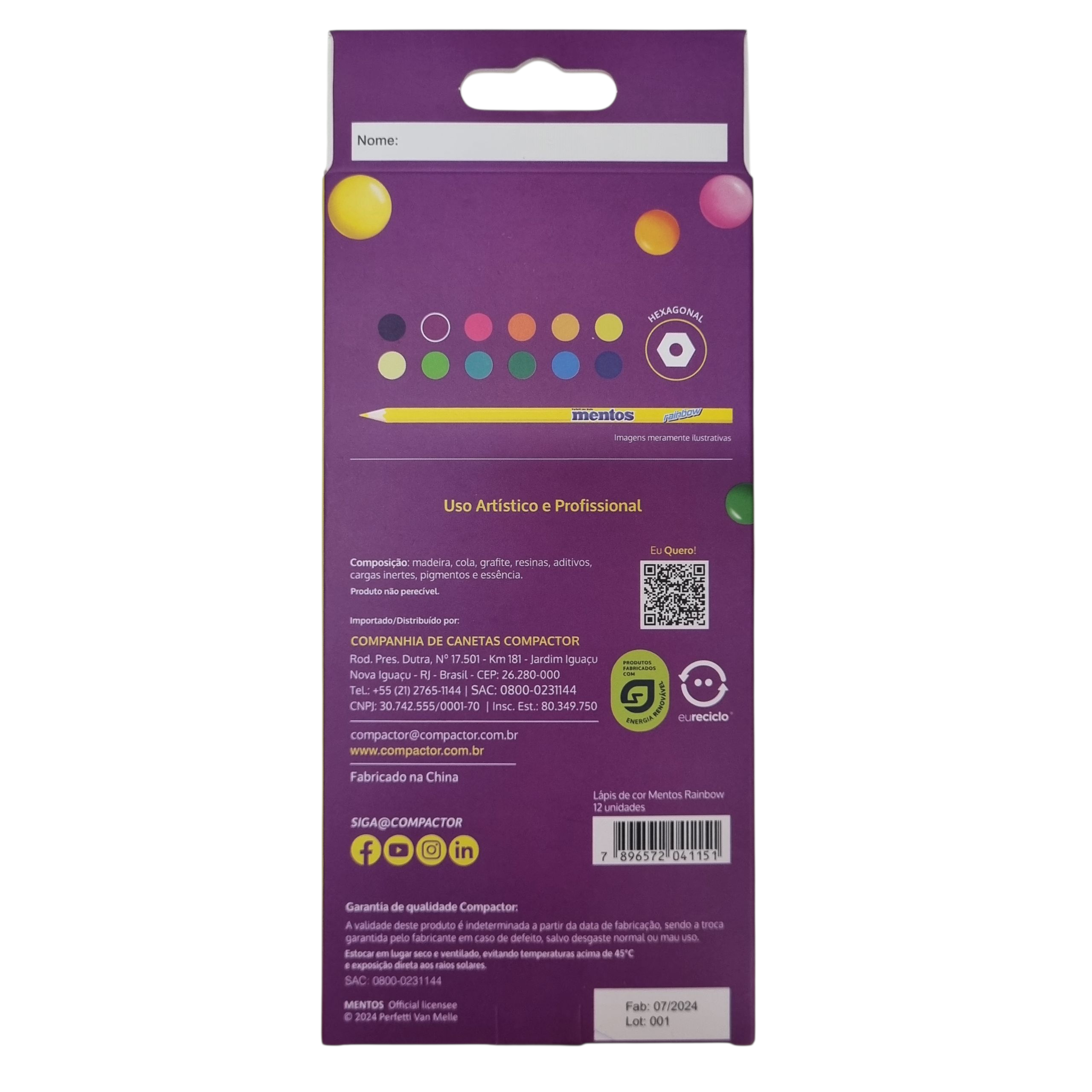 Os Lápis de Cor Neo-Pen Mentos 12 Cores com Cheirinho – Compactor oferecem cores vibrantes, traço suave e o divertido aroma inspirado nas balas Mentos. Ideais para uso escolar, atividades criativas e presentes, eles são perfeitos para quem busca lápis de cor aromatizados, criativos e duráveis para desenhar e colorir.