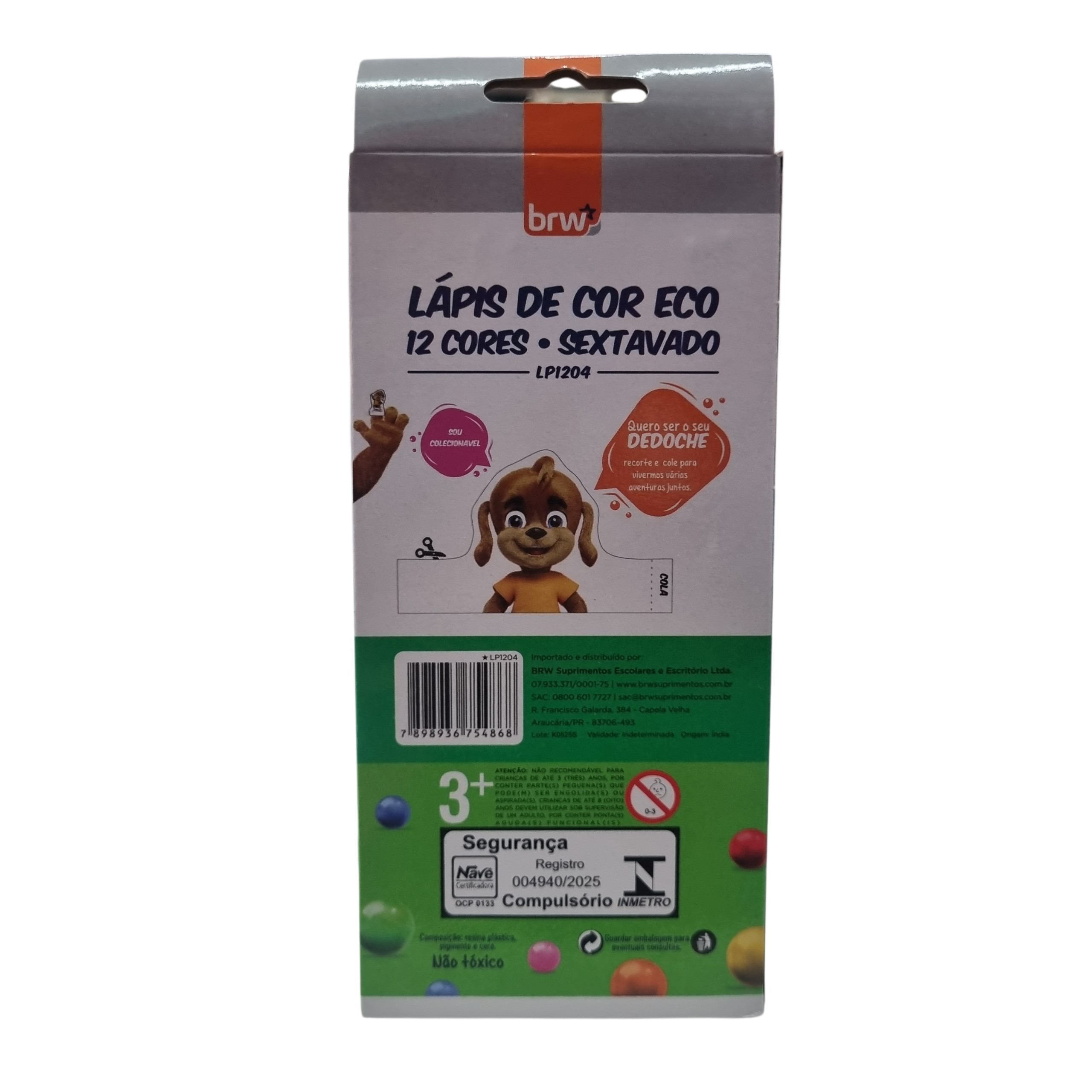 Conjunto de lápis de cor ecológicos com 12 cores vibrantes e formato sextavado que proporciona pegada confortável e evita que rolem sobre superfícies. Com mina resistente e produto não tóxico, ideal para atividades escolares, desenhos artísticos e trabalhos criativos. Estimula o aprendizado das cores, a coordenação motora e a criatividade de crianças e adultos.