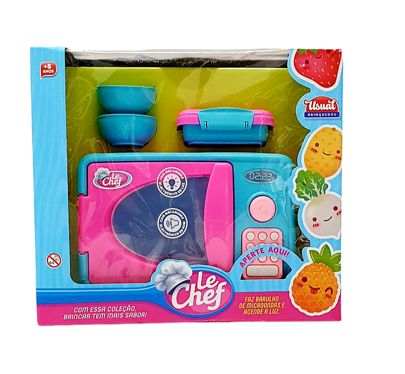 Microondas Le Chef com som e Luzes – Usual Brinquedos. Microondas Infantil que acende as luzes e sai som como um microondas de verdade, Muita diversão na sua cozinha completa e comidas quentinhas, para as bonecas!!
