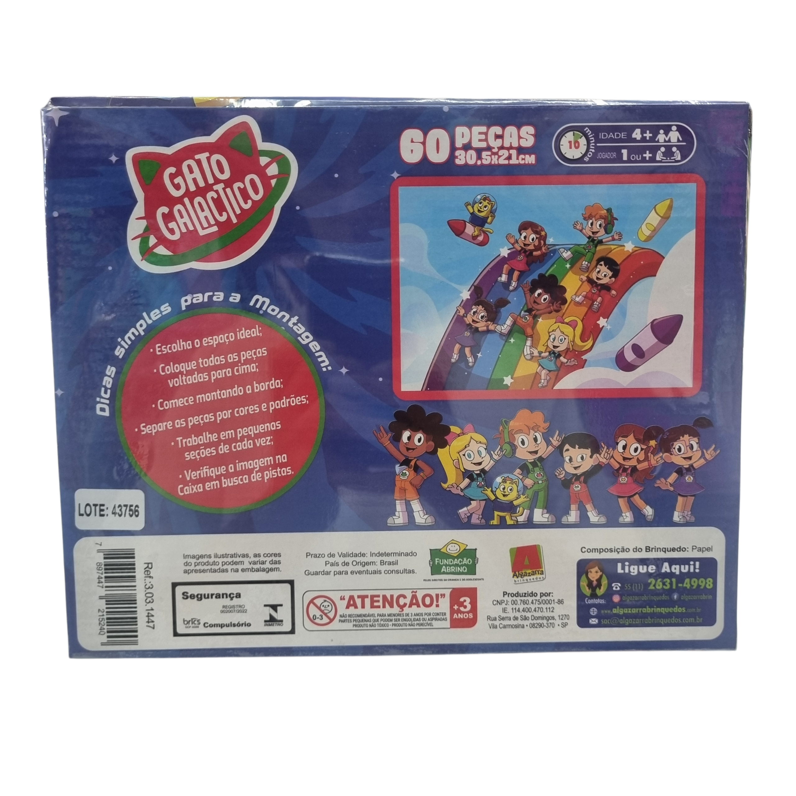O Quebra-cabeça do Gato Galáctico 60 peças é ideal para estimular o raciocínio lógico, a concentração e a coordenação motora de forma divertida. Com ilustração inspirada no univewrso do Youtuber Gato Galáctico, é perfeito para todos os tipos de fã do influencer, promovendo atividades educativas e momentos de lazer.