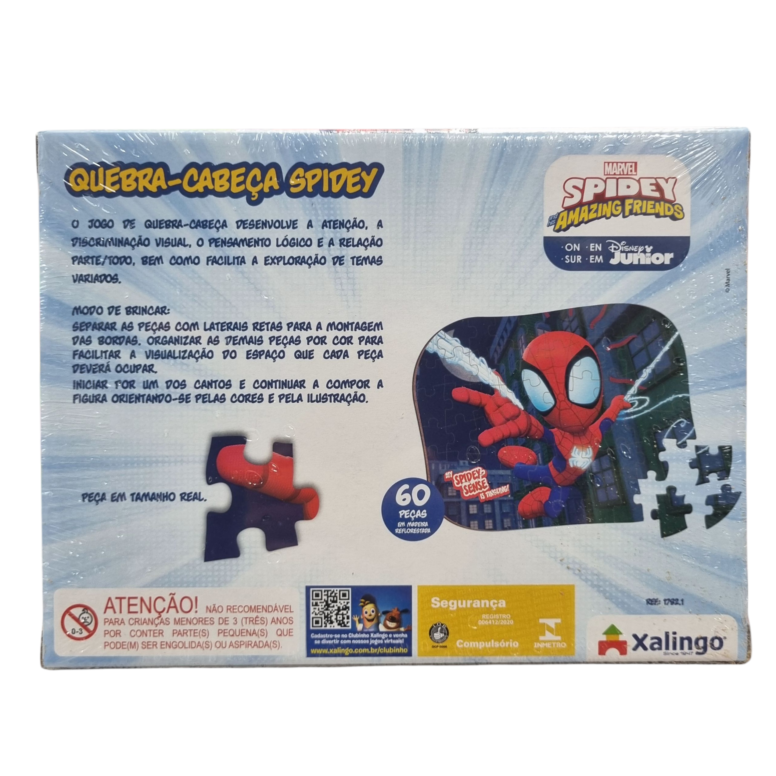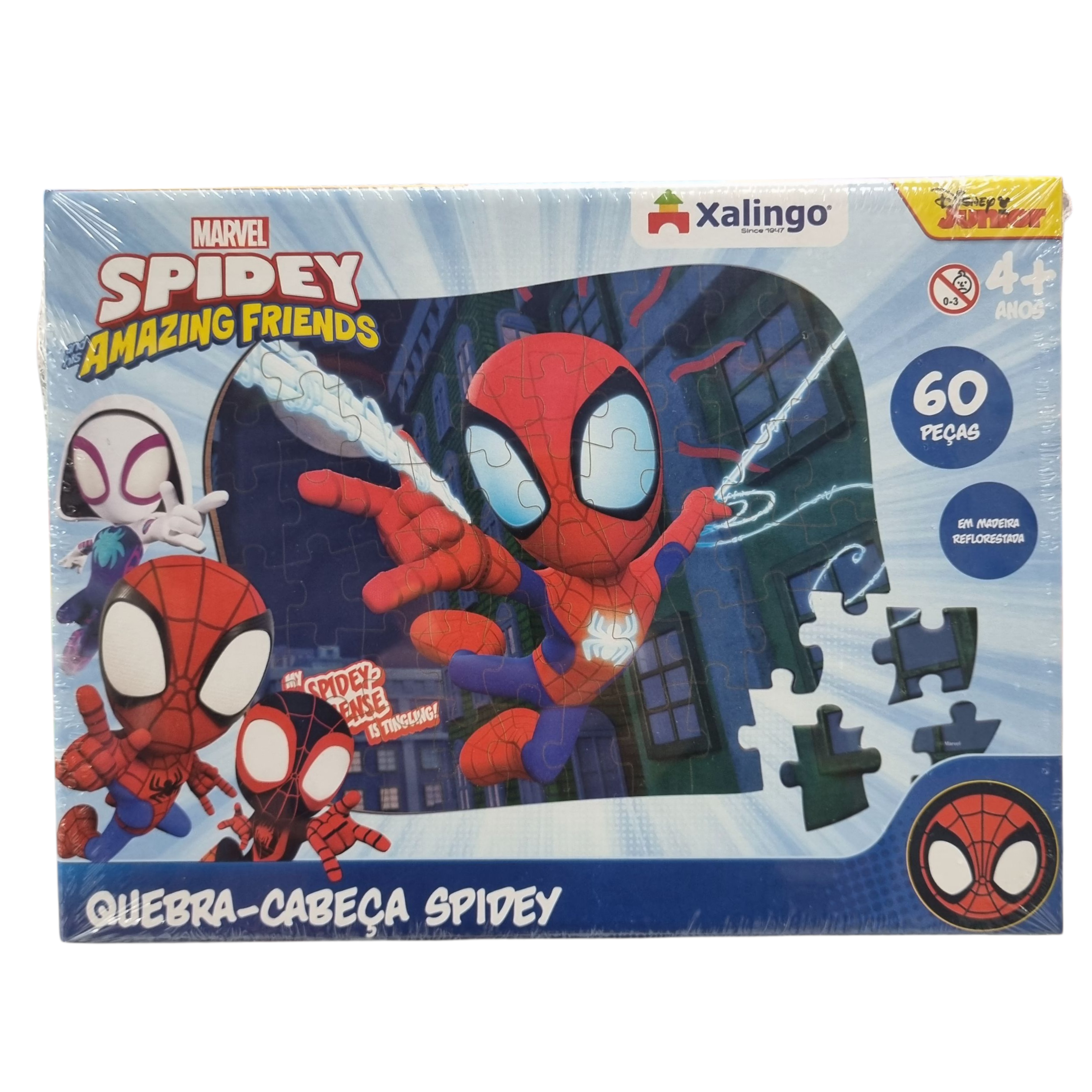 O Quebra-Cabeça Spidey and His Amazing Friends da Xalingo traz 60 peças em madeira resistente, ideal para crianças a partir de 4 anos. Com ilustrações vibrantes dos super-heróis favoritos da Marvel, ele estimula a coordenação motora, o raciocínio lógico e a concentração, perfeito para montar com a família.