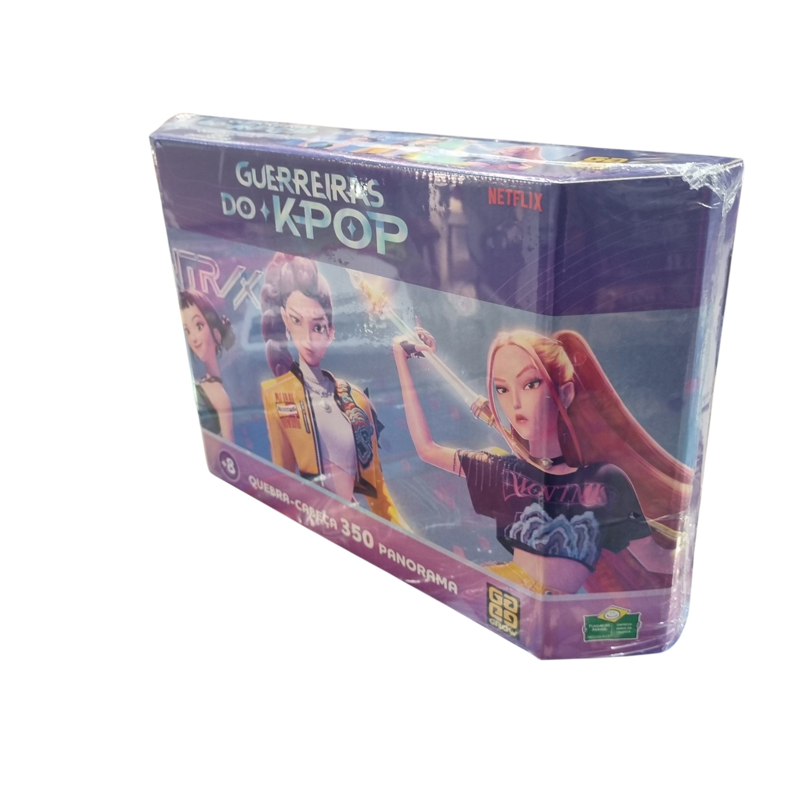 O Quebra-cabeça panorâmico de 350 peças da Grow apresenta uma arte colorida e cheia de vida inspirada no universo de Guerreiras do K-pop. Com peças de boa qualidade e montagem de dificuldade média, é perfeito para momentos de lazer, e após montado, também é uma ótima peça de decoração.