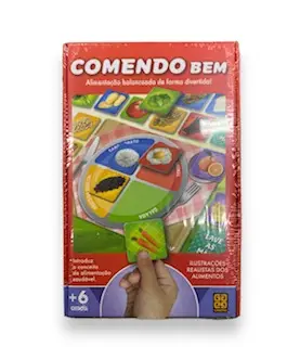 Jogo Comendo Bem – Grow O Jogo incentiva a criança a identificar e reconhecer 20 alimentos divididos entre cinco categorias diferente: Proteina animal, Proteina vegetal, carboidratos,saladas e frutas.O jogo transmite330 noções básicas do que é uma refeição saudável,quais são os diferentes tipos de alimento e estimula a criança a montar um prato balanceado de forma simples e prazerosa.O jogador que terminar primeiro seu prato com um alimento de cada categoria será o vencedor!