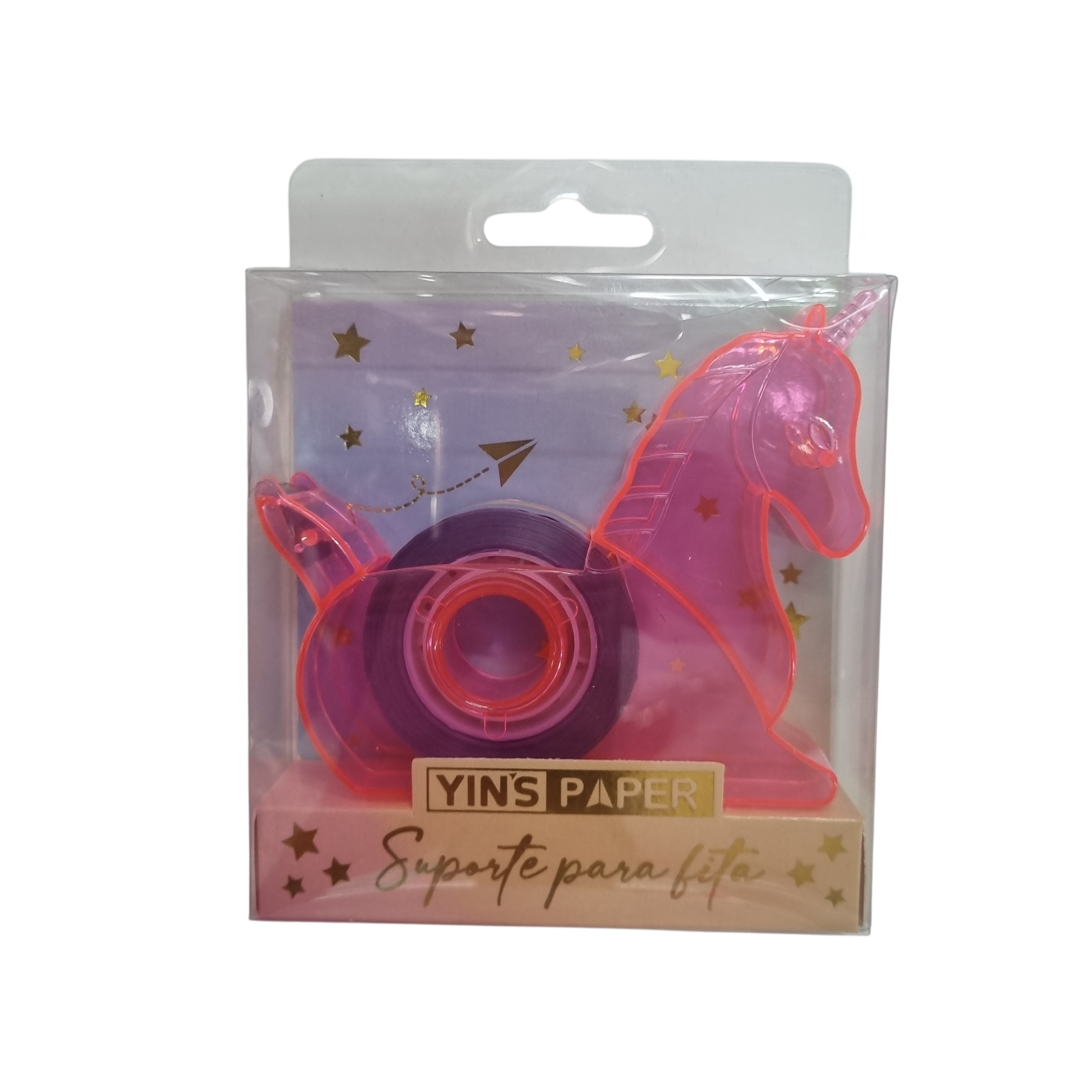 O Suporte para Fita Adesiva Unicórnio da Yin’s Paper é um item de papelaria prático e divertido para organizar sua mesa. Com design colorido em formato de unicórnio, facilita o uso e corte da fita no dia a dia. Ideal para escola, escritório, artesanato e decoração do espaço de estudo.