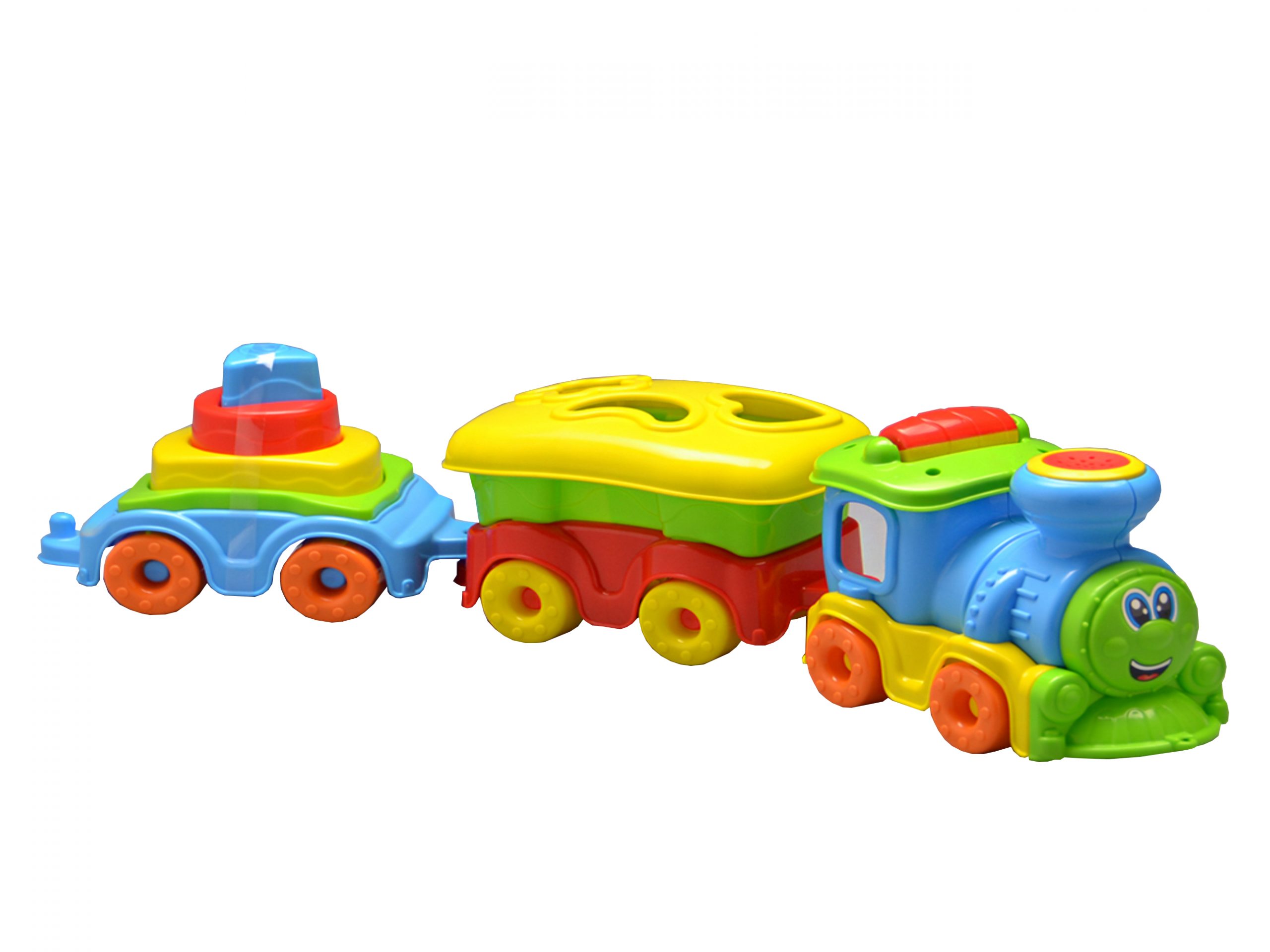 - Contém: 1 locomotiva, 2 vagões, 1 tampa passa-cubos, 3 cubos didáticos e 3 blocos empilháveis;
